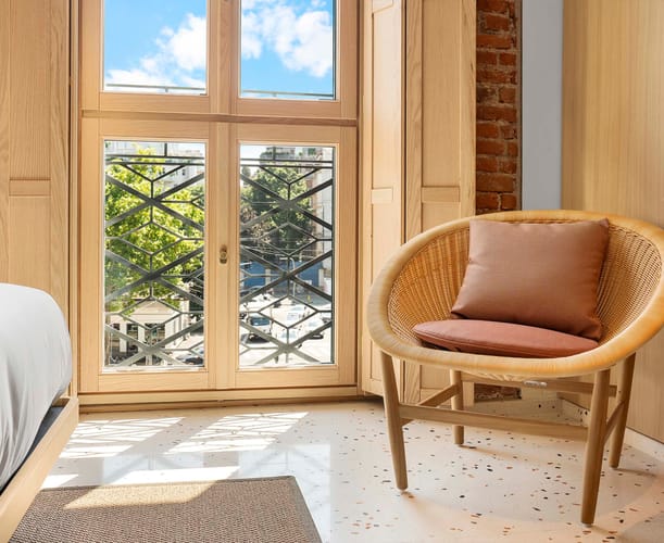 Diseñada pensando en la versatilidad y el estilo, la Habitación Cuádruple Prestige combina la elegancia del alojamiento boutique con la libertad de una cocina americana privada. Con cuarto de dormir y sala de estar separados, esta suite es perfecta para familias o grupos pequeños. Disfruta relajadamente de un desayuno a tu ritmo, prepara comidas ligeras o desconéctate refugiándote en tu privacidad tras un día de ajetreo en la ciudad. Funcional, moderna y elegantemente espaciosa.